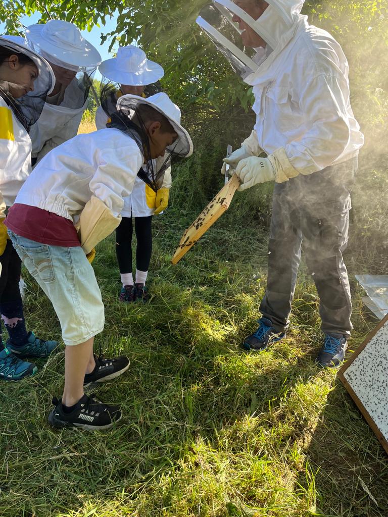 am Freitag, den 10. Juni besuchten die Kinder der beiden dritten Klassen bei schönstem Wetter während des Unterrichts einen Imker in Diedenbergen. Passend zum aktuellen Thema "Bienen" im Sachkundeunterricht konnten die Kinder das Erlernte nun in der Natur beobachten. In entsprechender Schutzkleidung machten sie sich erfolgreich auf die Suche nach der Bienenkönigin. Ein großes Dankeschön gilt Andreas Hegeler, der den neugierigen Kindern geduldig zahlreiche Fragen beantwortete.